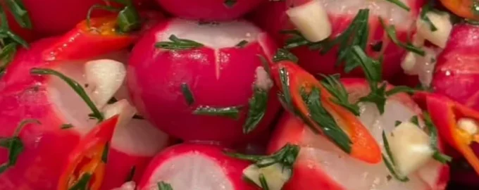 Δεδομένου ότι είναι η εποχή των σπιτικών ραπανάκια, είναι μια καλή στιγμή για να προσθέσετε αυτό το πρώιμο ανοιξιάτικο λαχανικό στο μενού σας. Ένα βίντεο με ραπανάκια τουρσί έχει γίνει viral στα κοινωνικά δίκτυα και πολλές οικοδέσποινες έχουν ήδη δοκιμάσει αυτή την τάση στην κουζίνα τους. Η μπλόγκερ μαγειρικής Kristin Azizyan μοιράστηκε μια δοκιμασμένη συνταγή για ραπανάκια τουρσί. Είναι γρήγορη και εύκολη στην παρασκευή της και αποδεικνύεται απίστευτα νόστιμη και γευστική.
