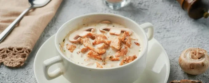 Σούπα με μανιτάρια και λιωμένο τυρί